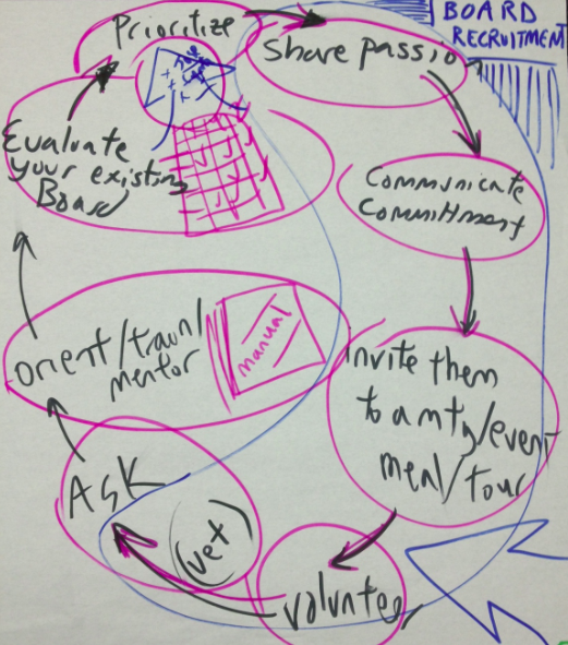 Building upon the success of the workshops I led, the Gogian Foundation wanted to launch a pilot program to give boards the opportunity to build upon these workshops during a retreat for their organization. She asked if I could facilitate a workshop for two organizations simultaneously and I said sure, no problem. Both Boards wanted to use time at the retreat to reflect on their boards and prioritize ways to grow. We put together a half-day retreat and focused it on five areas: board roles and responsibilities, leadership, best practices, stages of board development and recruitment.