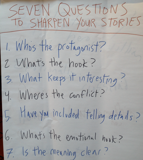 As an organization, the Land Trust has incredible positive momentum behind them. To illustrate this, I asked retreat participants to form a semi-circle showing how long each of them have served the Land Trust, which ranged from a few weeks to six years. The size of the staff nearly doubled since last years retreat! I asked everyone to briefly share what issue brought them to work at the Land Trust and heard a variety of passionate answers. I then asked staff to pair up and share each other’s stories with each other in greater detail. This began a series of exercises and activities where we explored different kinds of stories nonprofits tell – stories their founding, people, strengths and positive impact they make on the community.
