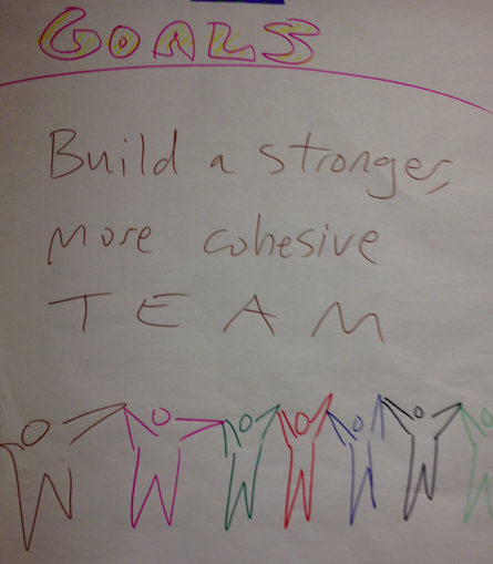 2. “A Discovery phase during which members from the system develop an in-depth understanding of (a) the “life-giving properties “ that are present in those exceptional moments when the organization is performing optimally in human, economic, and organizational terms and (b) of the structures, dynamics and other associated conditions that allow those “life-giving properties “ to flourish.”: I asked staff to pair up and share stories with each other for when they felt the experienced teamwork at its best. This activity aims to bring real stories of success to the forefront and then give the group the opportunity to explore the ingredients for the success. In groups of four, I asked participants to generate common themes they heard and then together as a large group, we prioritized the elements people thought generated the most positive momentum.