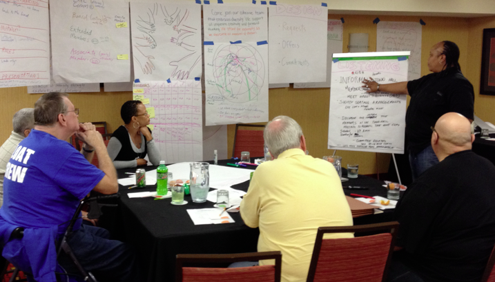 instructions and participants created a shared images of what their organization would look, be, feel, and function like if those “exceptional moments” and the “life-giving properties” in the system became the norm rather than the exception”. After brainstorming several ideas, participants split up into smaller groups and created an image capturing the possibility of the group along with a statement.